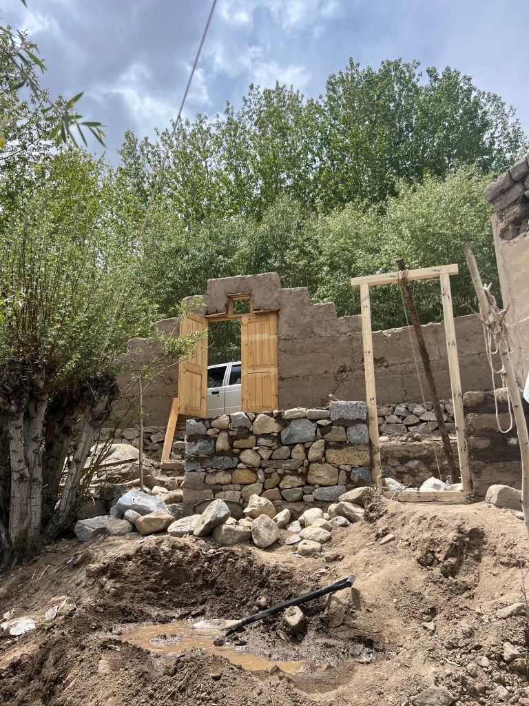 Local wood of poplar and willow are traditionally used as roofing materials. Salvaged timber, discarded wooden crates and doors and windows of varied sizes may be found.